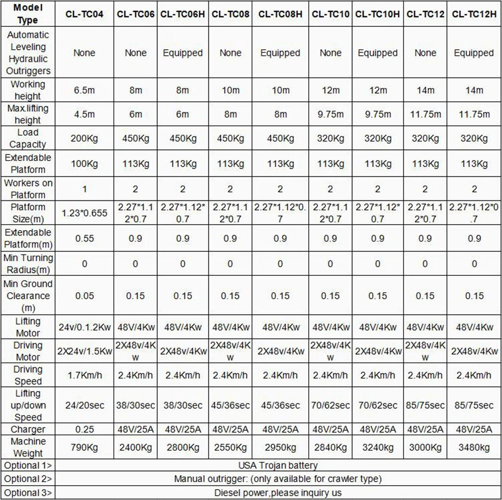 CATHAYLIFT クローラー式全自走式エレベーターは、上昇力が高く、前後左右に自由に旋回できます。 1 人で操作できるため、時間と労力を節約できます。 その主な特徴は、ユーザーが機械的な持ち上げを制御し、持ち上げプラットフォームから降りることなく他の作業場所に移動できることです。 独自の利点があります 歩行とステアリングの駆動機能は、手動牽引や外部電源を必要としません。 柔軟で移動が便利で、空中作業がより便利で迅速になります。 これは、現代の企業における効率的かつ安全な生産のための理想的な高所作業装置です。 自動歩行機能を備えた補助自走式油圧リフトは、外部電源なし、外部動力牽引なし、柔軟な動き、便利な操作、自由な持ち上げ、1人だけが前方、後方、ステアリング、高速を完了することができる、さまざまな作業条件にすることができますゆっくりとした歩行と上下の動きで、労力と労力を節約できます。 駅、ドック、空港、発電所、スタジアム、および大企業での大規模な高高度運用に特に適しています。 現在、中国で理想的な高高度運用機器の 1 つです。